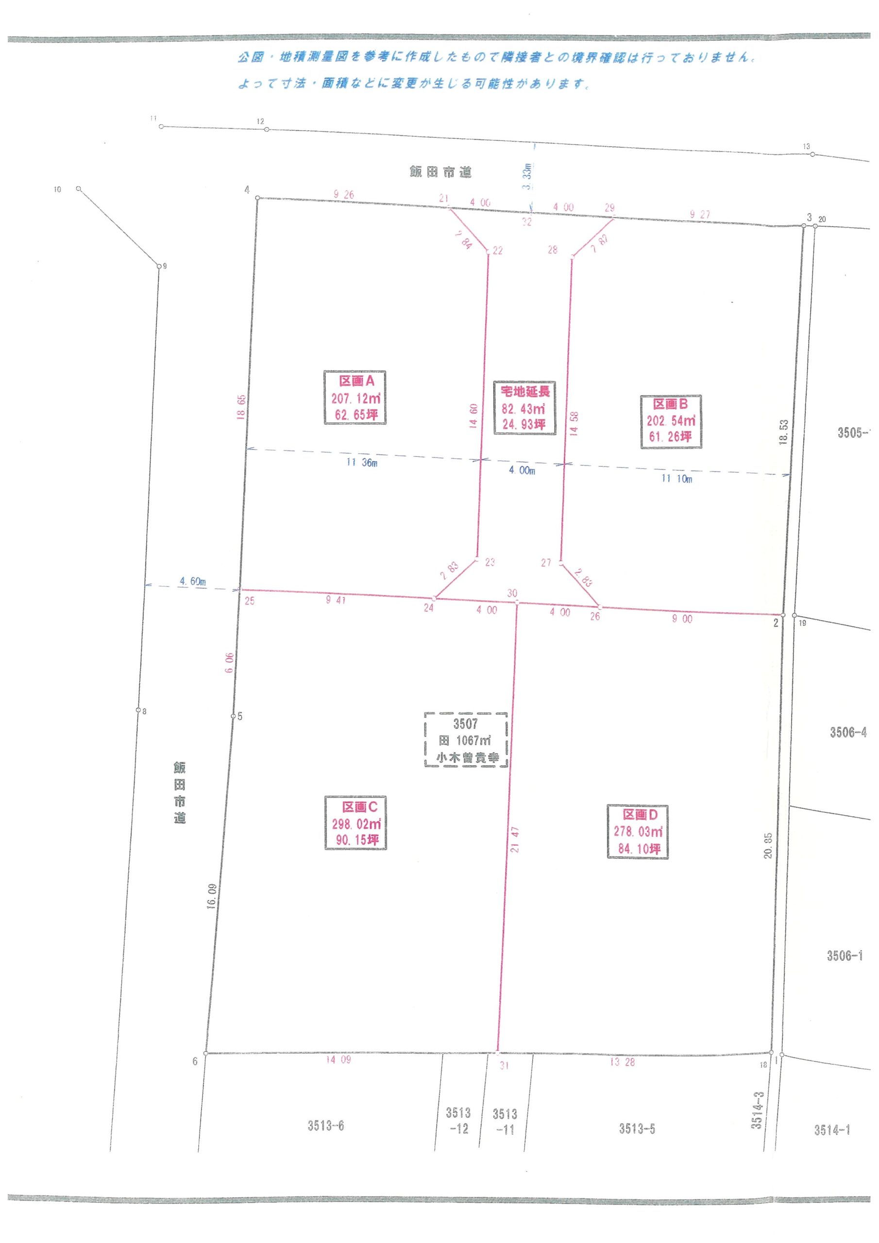 所在地 / 飯田市長野原108-1他 面積 / 292.82㎡(88.57坪) 価格 / 4,500,000円